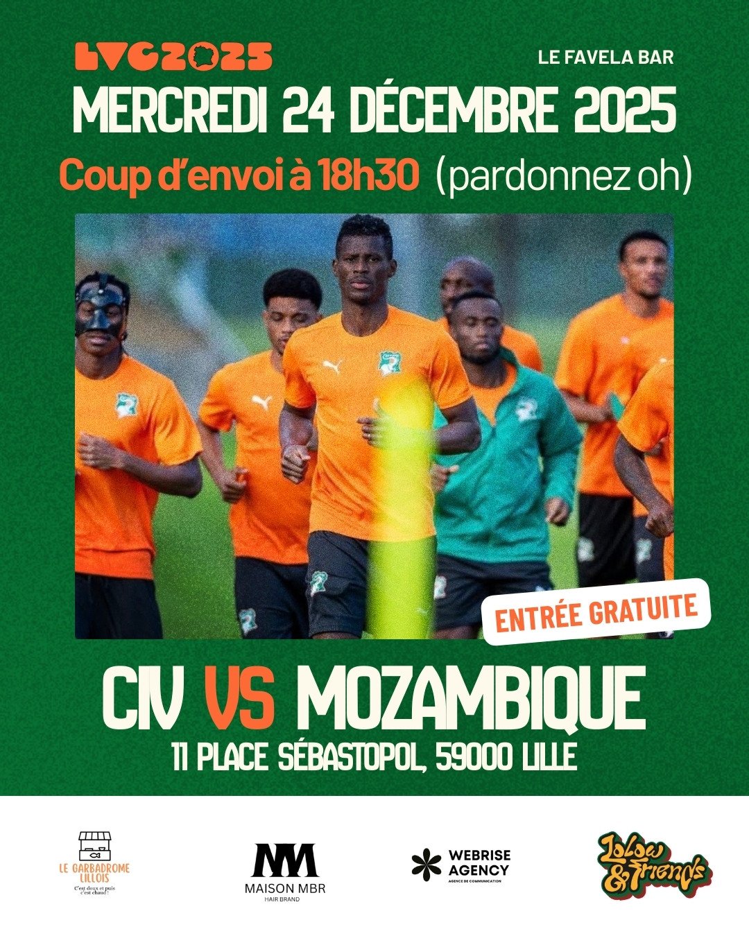 Le Box2Box 18 rue saint-jacques, Lille, FranceLes éléphants de Côte d'Ivoire affrontent les voisins du Burkina Faso en huitièmes de finale de la CAN au Maroc. Venez vivre ce match au Lille Village Can 2025.